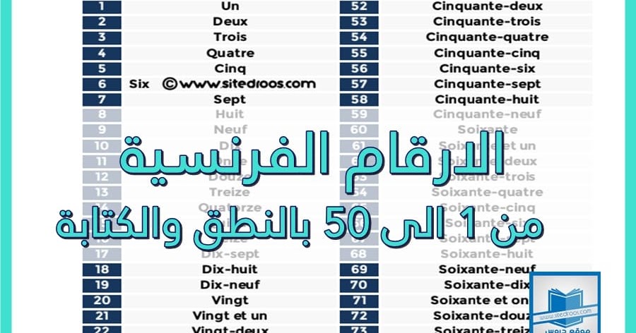 الارقام بالفرنسية من 1 الى 50 كتابة مع النطق