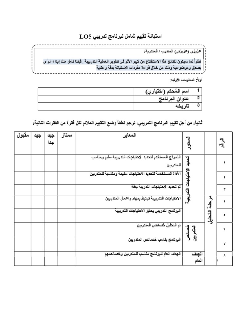 استمارة تقييم برنامج تدريبي Shms Saudi Oer Network