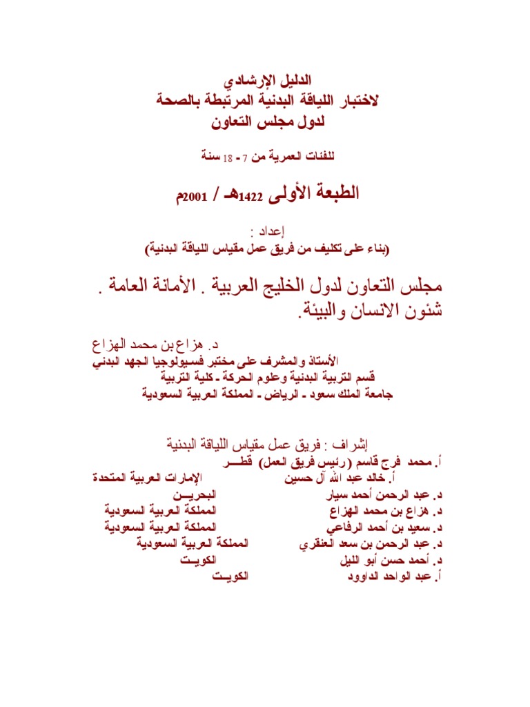 استمارة قياس عناصر اللياقة البدنية المرتبطة بالصحة