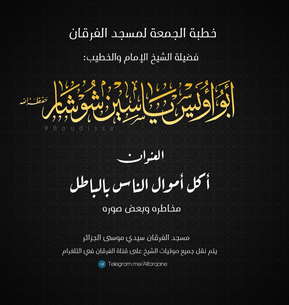 خطبة جمعة بعنوان من صور أكل أموال الناس بالباطل ـ للشيخ أبو أويس ياسين شوشار ـ حفظه الله ـ منتديات التصفية و التربية السلفية
