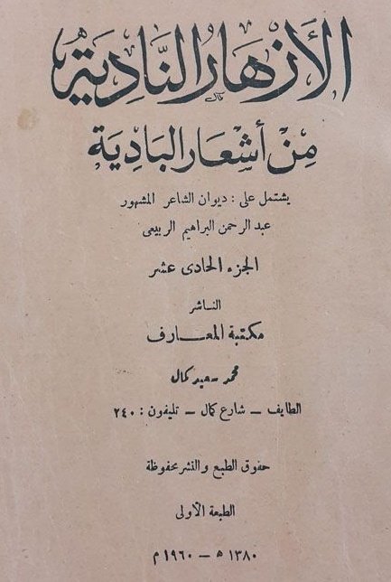 الأزهار النادية من أشعار البادية الناشر مكتبة المعارف الطائف١٣٦٧هـ فيسبوك