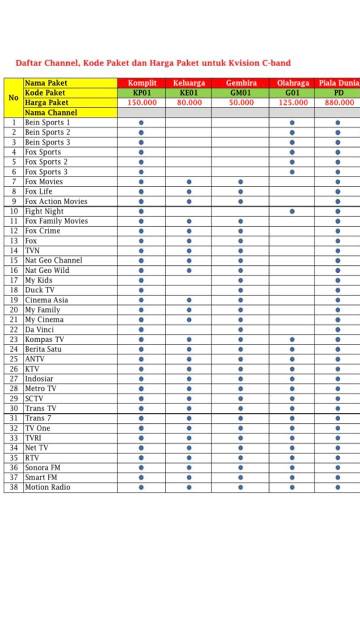 Daftar Chanel Parabola K Vision Ku Band Cartenz 085103022986 K Vision Jogja Yogyakarta 085103022986