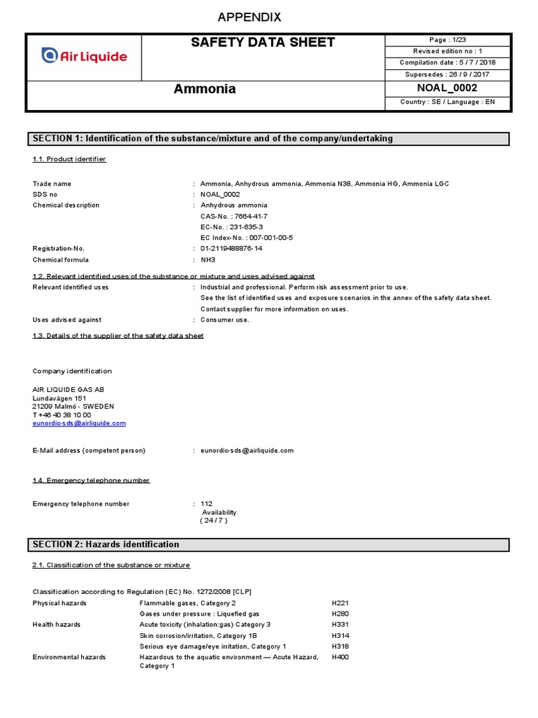 Ammonia Noal 0002 Se Enhtd Dangerous Goods Toxicity