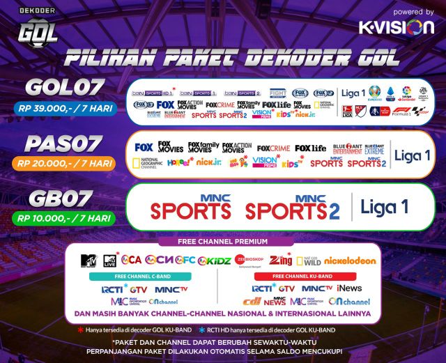 Daftar Harga Paket Stb Gol Terbaru 2020 K Vision