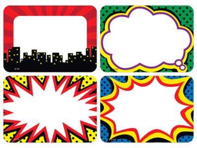 Amazon Com Name Stickers 600 Count Superhero Name Tag Stickers Assorted Comic Style Name Label Sticker Ideal For Students Classroom Party Visitor Passes 6 Speech Bubble Designs 3 5 X 2 Inches Office Products